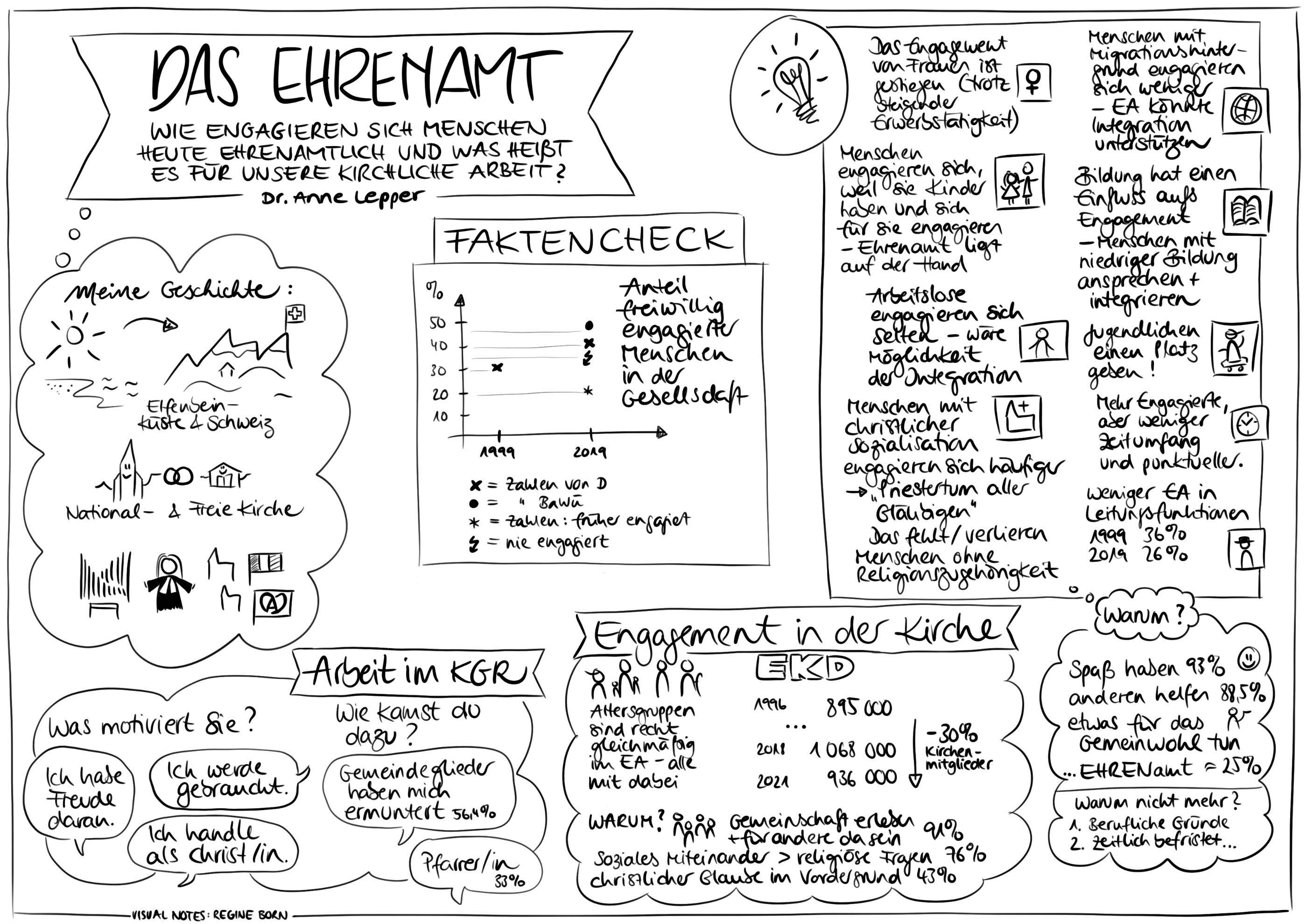 Pfarrerin Dr. Anne Lepper von der Fachstelle Ehrenamt im Evangelischen Oberkirchenrat in Karlsruhe überraschte positiv. Sie berichtete sehr anschaulich über die Entwicklung des Engagements von Ehrenamtlichen in der Gesellschaft und in der Kirche und über die Motivation, sich zu engagieren. Die Zahl der Ehrenamtlichen ist deutlich gestiegen, die Art des Engagement hat sich gewandelt. Freude an der Tätigkeit hatte die höchste Bedeutung für die Motivation, sich zu engagieren. In mehreren kurzen Workshops verabredeten die Teilnehmenden, wie sich das Gehörte in den jeweiligen Kooperationsräumen anwenden und umsetzen lässt.